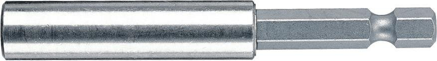 Universalhalter für die Aufnahme von Bits mit 1/4"-Außensechskantantrieb nach DIN ISO 1173-C 6,3. Edelstahlhülse für besonderen Korrosionsschutz. Der Sprengring garantiert optimalen Sitz des Werkzeugs im Halter. Der starke Dauermagnet hält die Bits bombenfest. 1/4"-Sechskant, passend für Schraubermaschinen mit Aufnahme nach DIN ISO 1173-F 6,3.