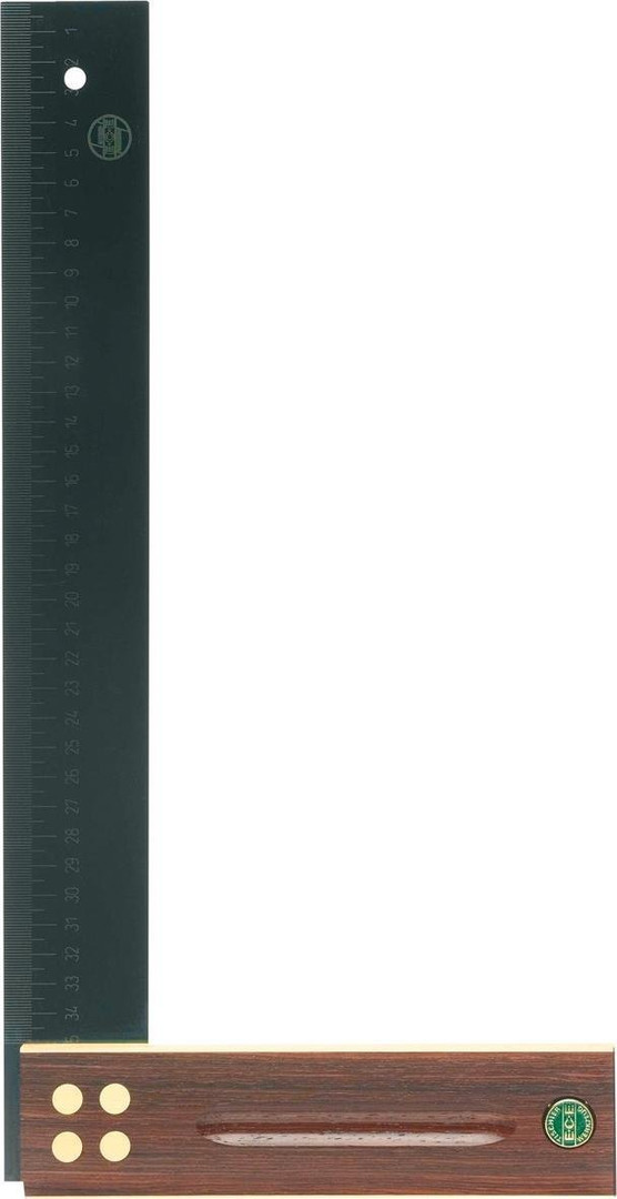 Mit federnd-harter, gebläuter Stahlzunge, mit gelaserter Skala, Handstück aus Palisanderholz mit Griffhohlkehle und doppelseitigem, starkem Messingbeschlag.