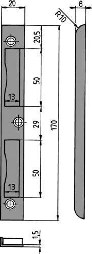 Z.T. Schließblech Savetime gefälzt L/R 8 x 20 x 170 mm Edelstahl matt