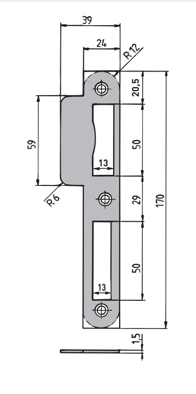 ZT-Schließblech "5-N" stumpf 24x170mm Links, abgerundet Edelstahl