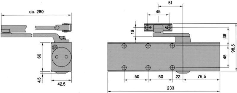 Oben liegender Zahntriebtürschließer, nach EN 1154 A, stufenlos einstellbare Schließkraft, voll kontrollierter Schließablauf, Endschlageinstellung über Gestänge einstellbar, konstante Schließgeschwindigkeit auch bei Temperaturschwankungen durch Thermostatventil, Normal- und Kopfmontage, Sondermontage auf Anfrage, problemlose Montage auch bei schwierigen Einbausituationen durch breites Zubehörprogramm, günstige Abmessung durch Kompaktbauweise, Gehäuse aus Aluminium, für DIN linke und DIN rechte Türen sowie Brandschutztüren bis 1.100 mm Breite . Mit selbstregulierender und einstellbarer Öffnungsdämpfung. Gestänge getrennt bestellen!