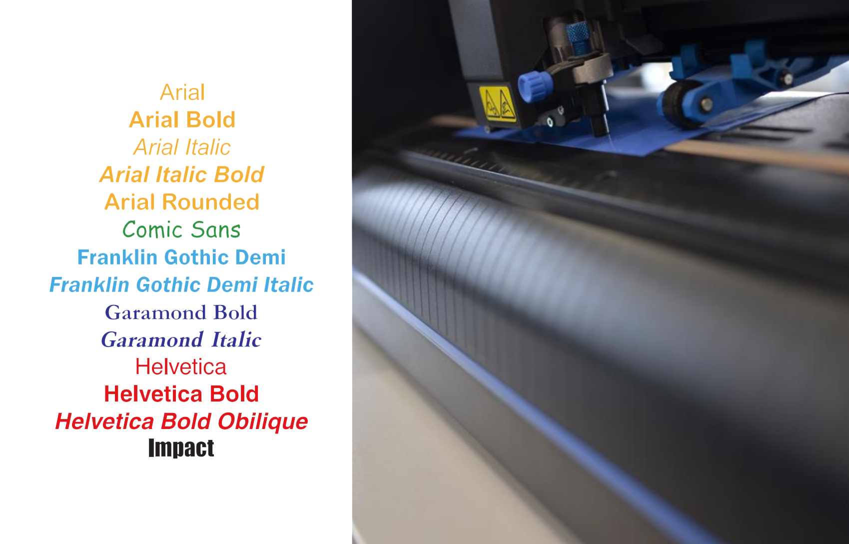 Du kannst aus sieben verschiedenen Schriftarten wählen (siehe Bild). Darunter stehen dir folgende Farben zur Verfügung: