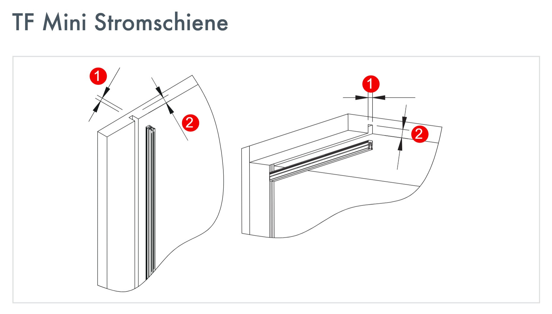 Die Mini-Stromschiene wird werkzeuglos und ohne Kleber in eine Nut eingesetzt. Diese muss 6 mm breit und 10 mm tief sein.